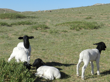 (5)繁殖性能強(繁殖率高:繁殖周期長,不受季節(jié)影響);杜泊羊可以在一年四季任何時期產(chǎn)羔,可達(dá)2年3胎;