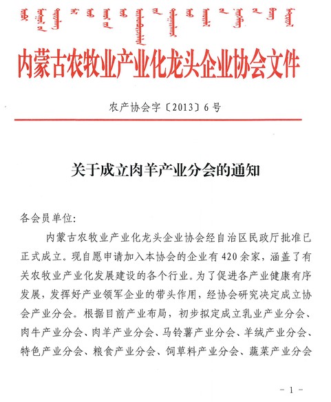 關于成立肉羊產(chǎn)業(yè)分會的通知