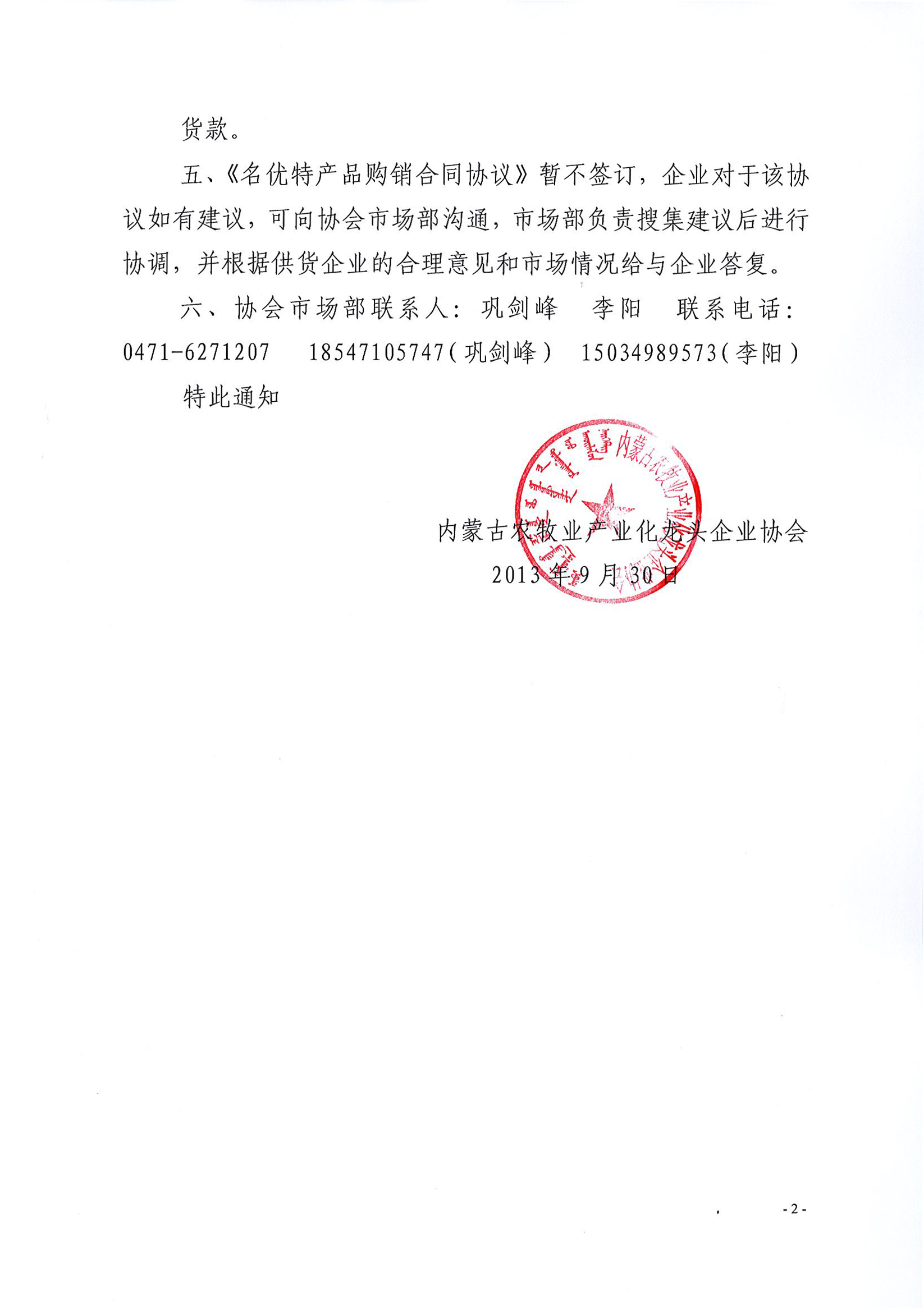 關于內蒙古農(nóng)牧業(yè)產(chǎn)業(yè)化龍頭企業(yè)名優(yōu)特產(chǎn)品在專賣店展銷的補充通知
