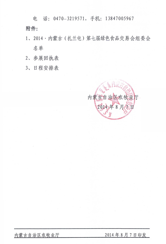 關(guān)于舉辦2014內(nèi)蒙古(扎蘭屯)第七屆綠色食品交易會(huì)的通知