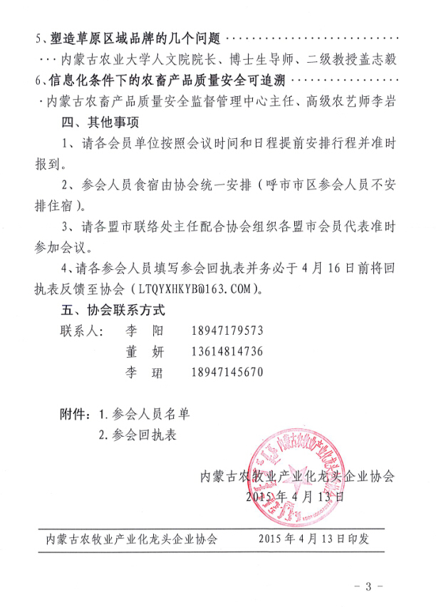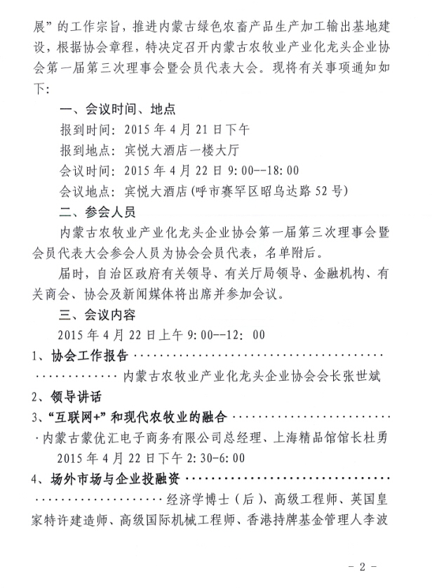 關于召開內蒙古農牧業(yè)產業(yè)化龍頭企業(yè)協(xié)會第一屆第三次理事會暨會員代表大會的通知