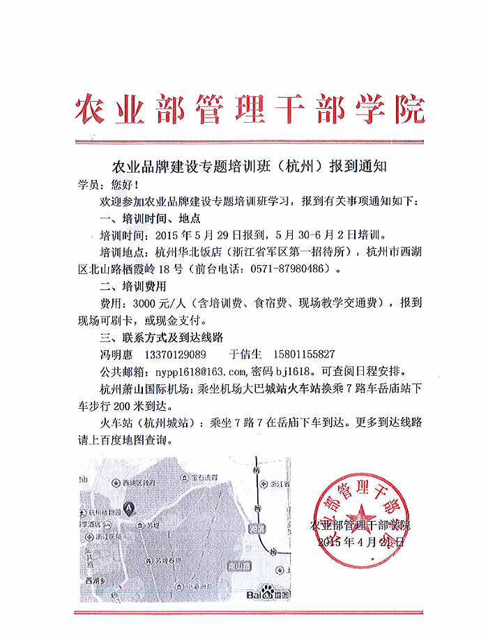 關(guān)于組織參加農(nóng)業(yè)品牌建設(shè)專題培訓(xùn)班的通知
