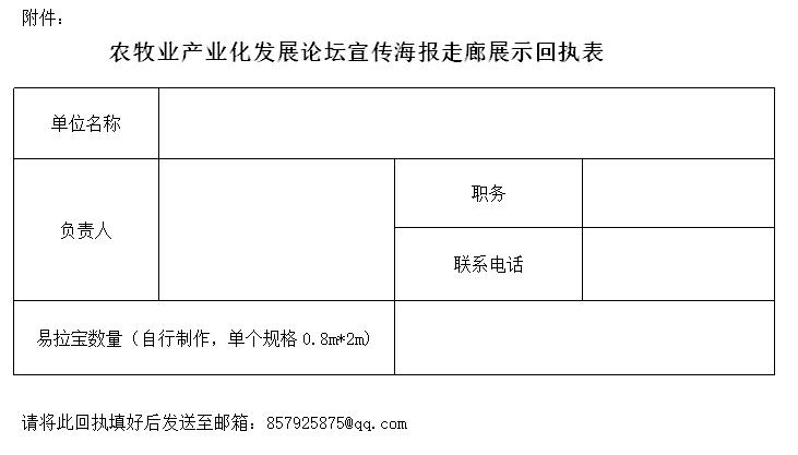 農(nóng)牧業(yè)產(chǎn)業(yè)化發(fā)展論壇宣傳海報走廊展示回執(zhí)表.doc