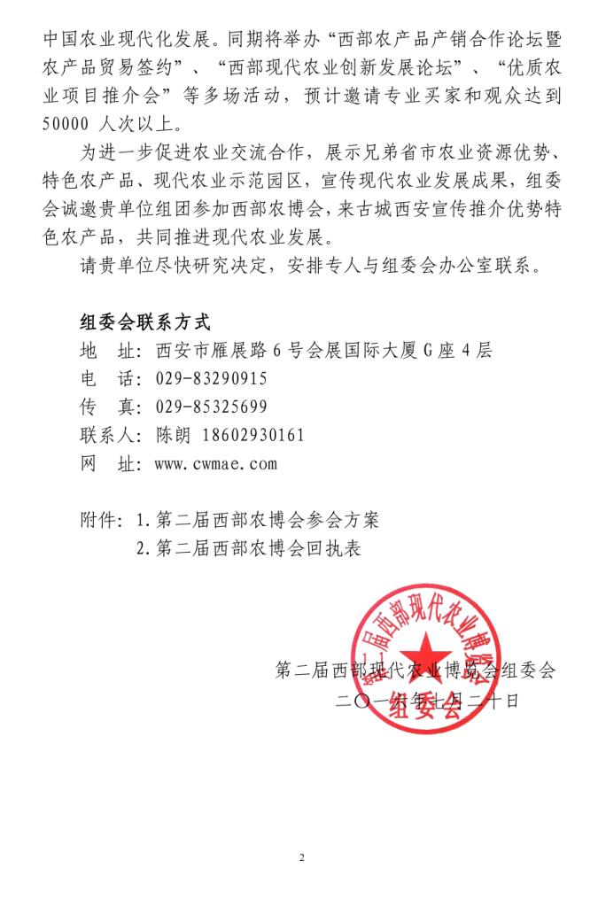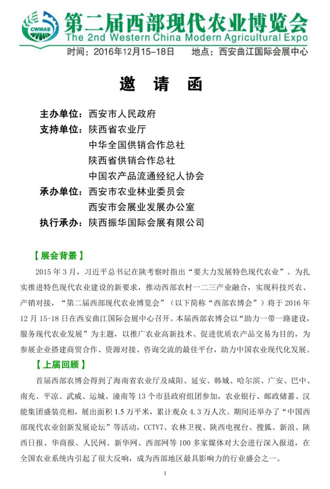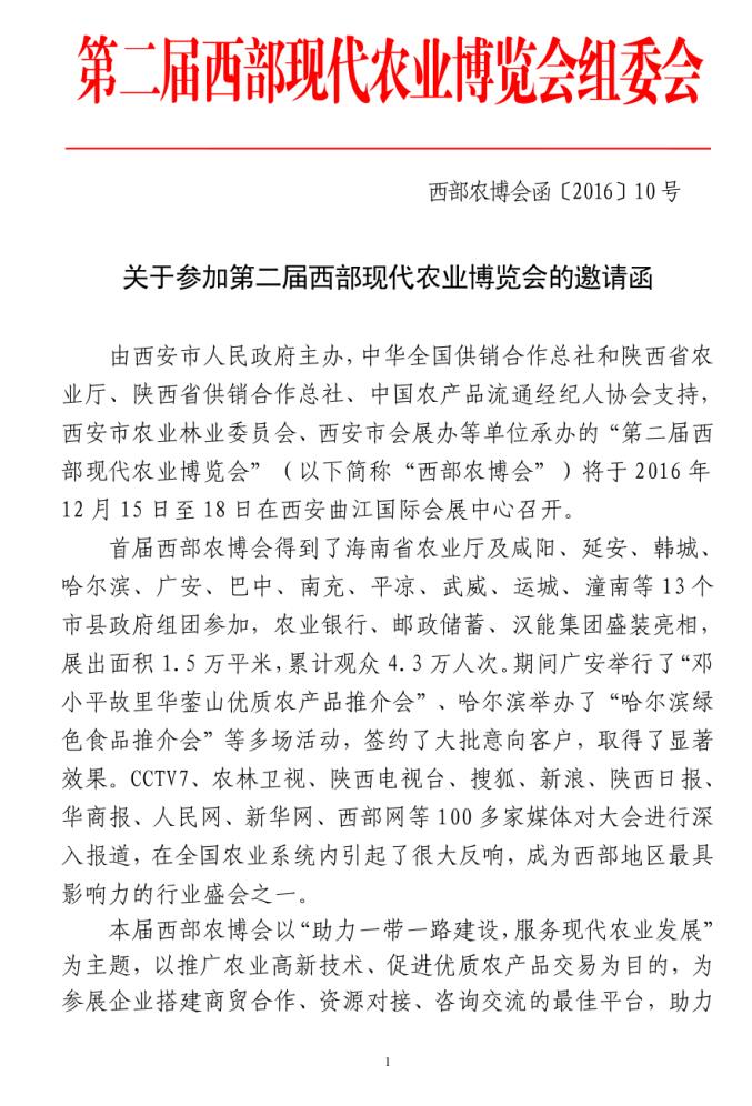 關(guān)于參加第二屆西部現(xiàn)代農(nóng)業(yè)博覽會(huì)的邀請(qǐng)函