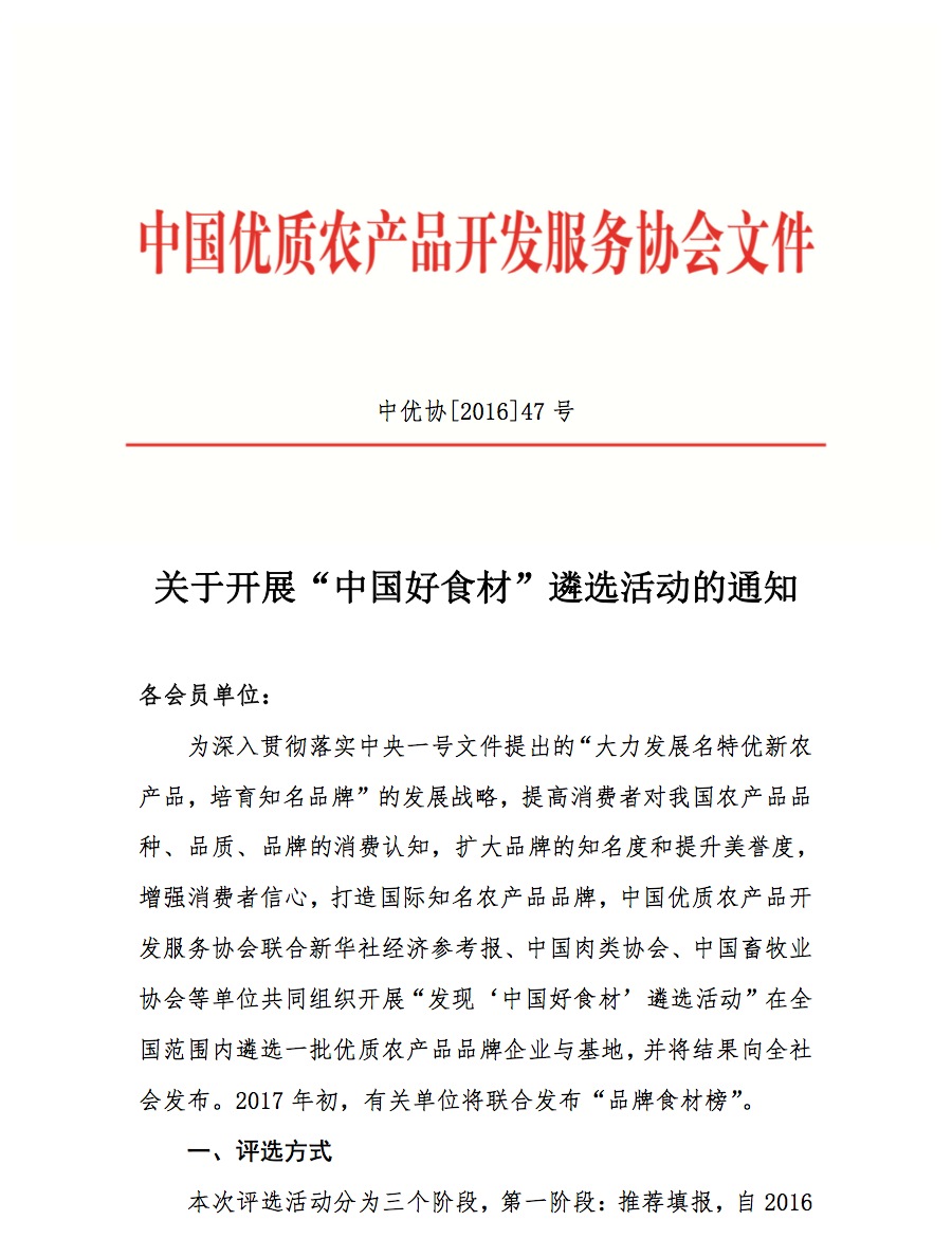 轉(zhuǎn)發(fā):關(guān)于開展“中國好食材”遴選活動的通知