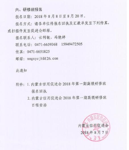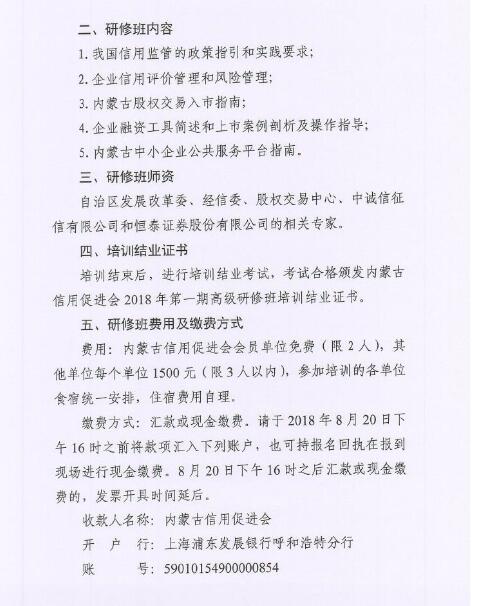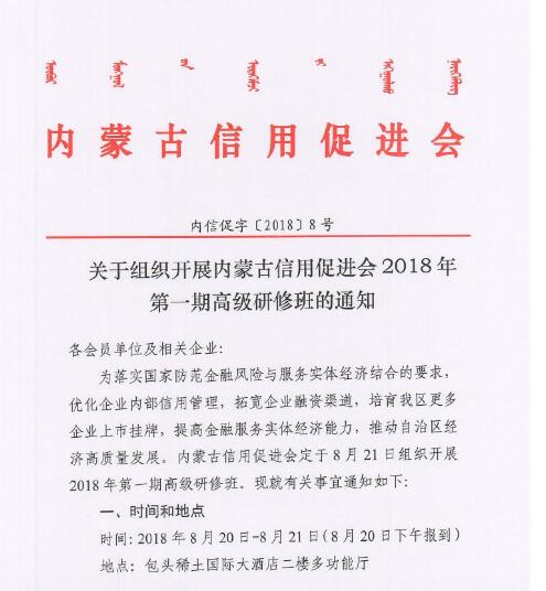 關于組織開展內(nèi)蒙古信用促進會2018年第一期高級研修班的通知