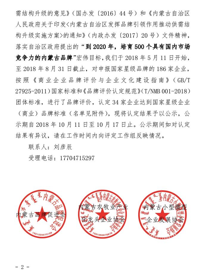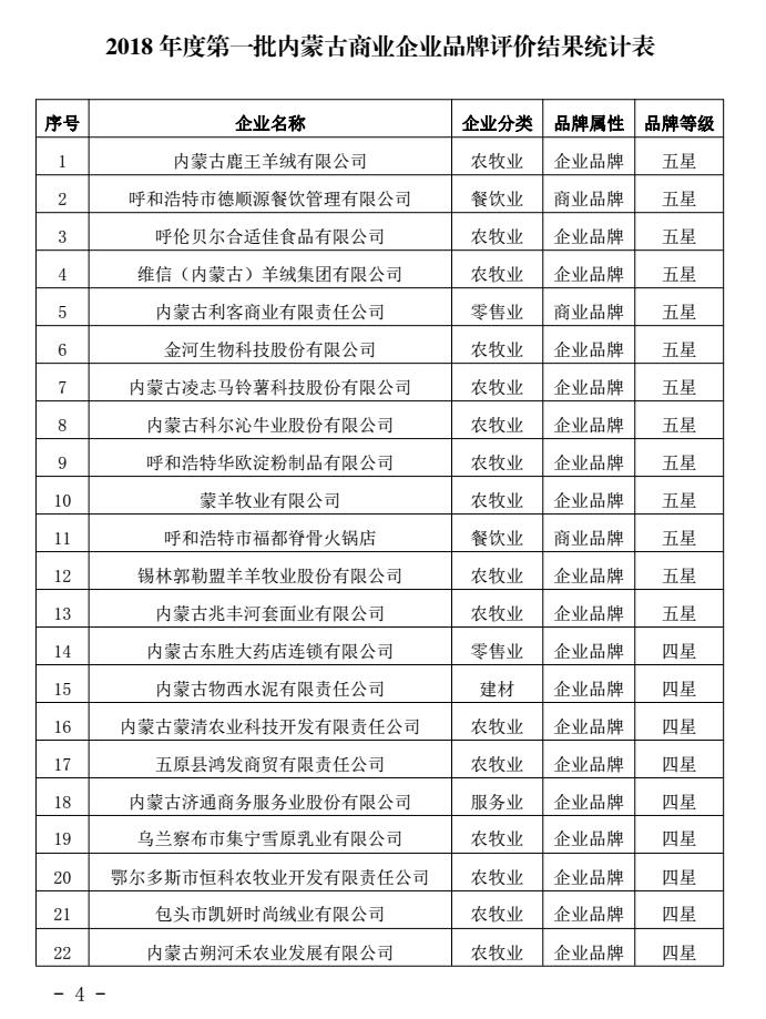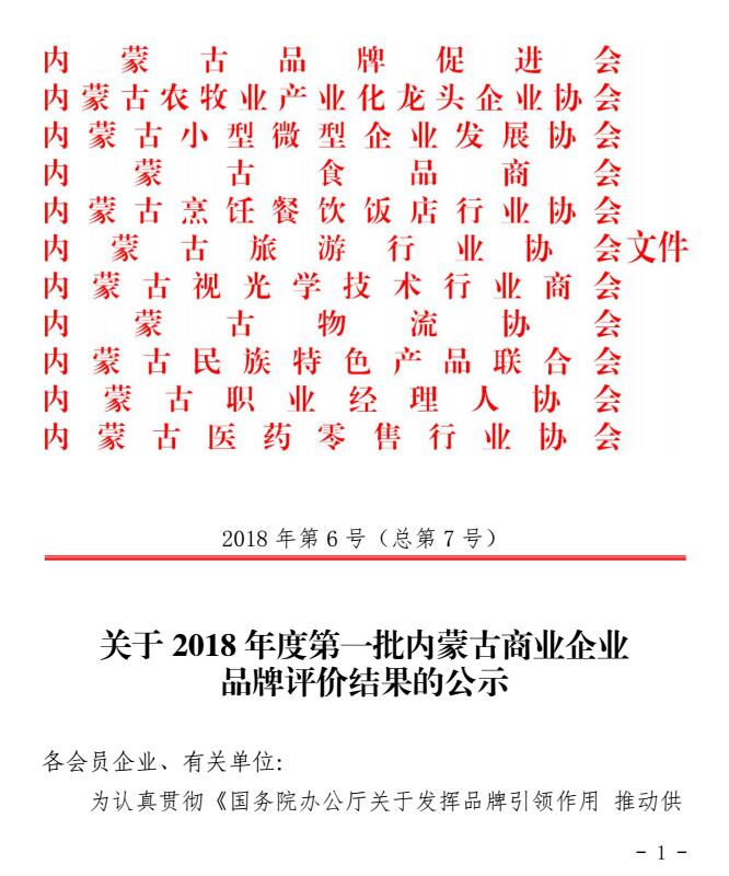 關于2018年度第一批內(nèi)蒙古商業(yè)企業(yè)品牌評價結果的公示