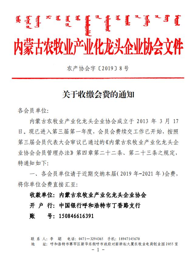 農(nóng)產(chǎn)協(xié)會字[2019]8號 關于收繳會費的通知
