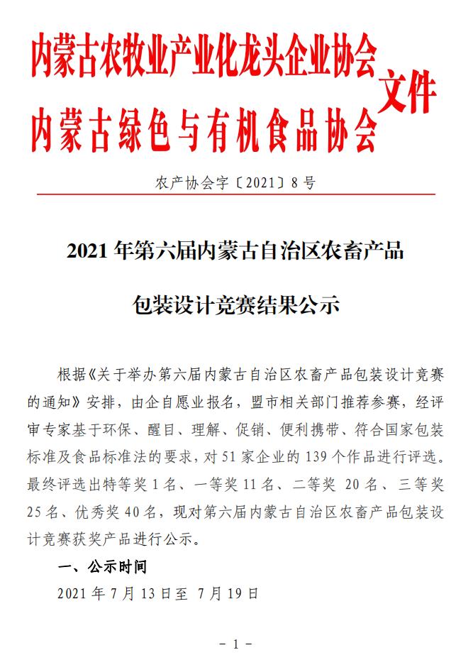 2021年第六屆內(nèi)蒙古自治區(qū)農(nóng)畜產(chǎn)品包裝設(shè)計競賽結(jié)果公示