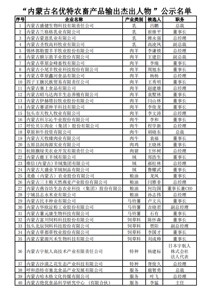 關(guān)于公示“內(nèi)蒙古名優(yōu)特農(nóng)畜產(chǎn)品輸出杰出人物”的通知