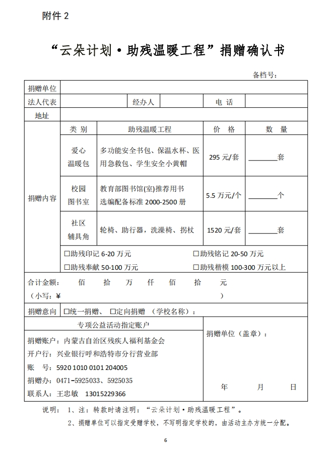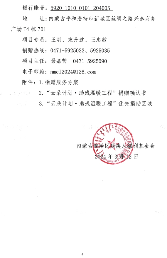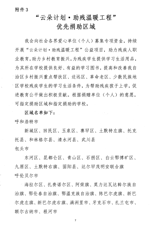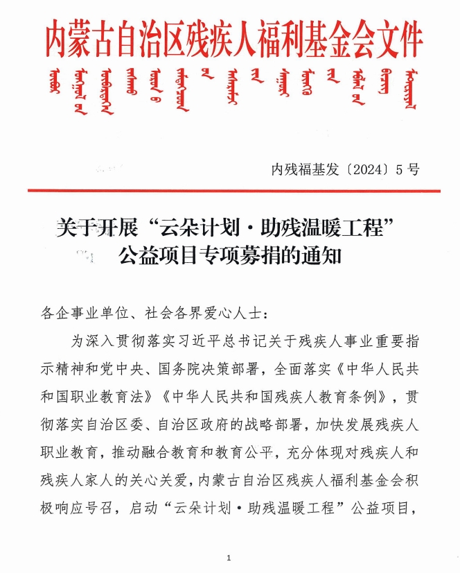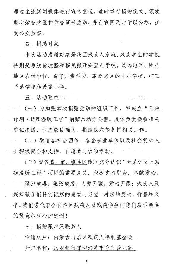 關(guān)于開展“云朵計劃·助殘溫暖工程’公益項目專項募捐的通知