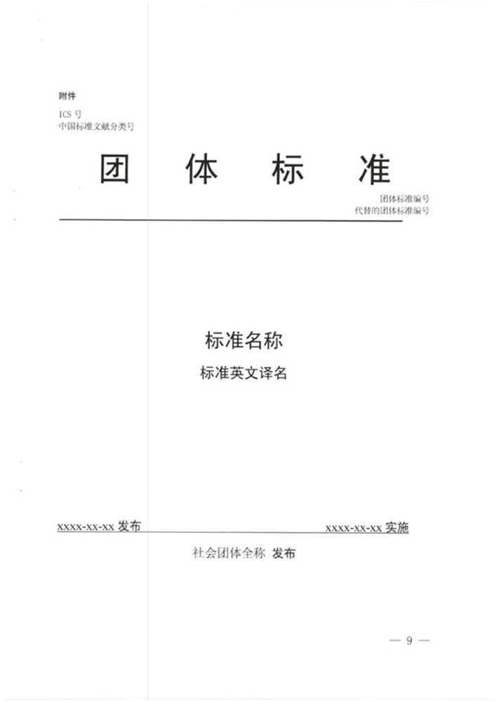 團體標準的封面格式應當符合要求,具體格式見附件。